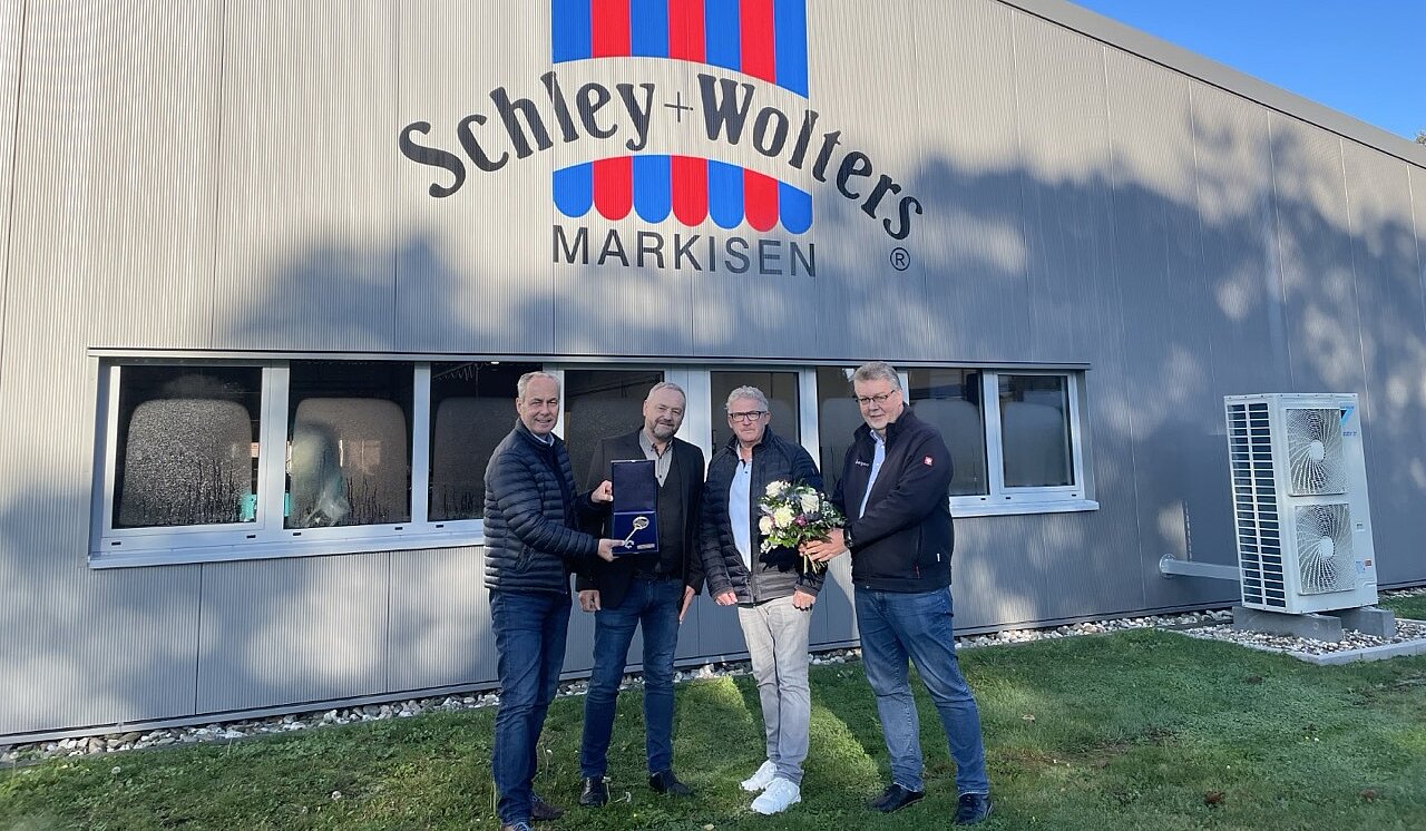 Der Geschäftsbetrieb des Markisenherstellers konnte schon während des Baus weitergehen, aus einem Container auf dem Hof. „Das Team von Borgers hat sich um alles gekümmert, auch bei der Versicherungsabwicklung unterstützt und uns den Rücken freigehalten“, so Jürgen Schley. „Wir hätten weder die Zeit noch genug Ahnung dafür gehabt, die verschiedenen Einzelgewerke selbst zu koordinieren.“ Seit September 2024 steht das Gebäude wieder – ausgestattet mit neuesten Energieeffizienzstandards und modernen Innenräumen. So war der fatale Brand letztendlich doch auch eine Chance – für einen Schritt in Richtung Zukunft.