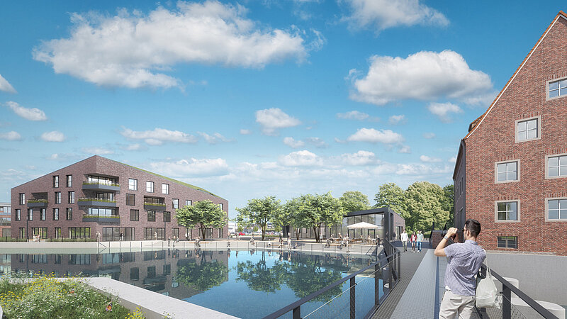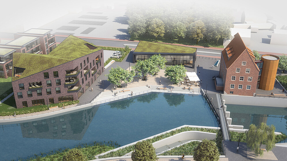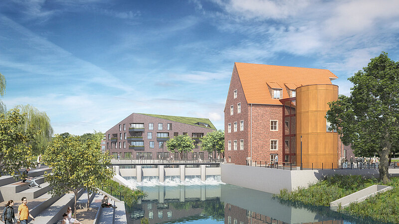 Das Berkelquartier wird nicht nur zu einem Ort der Begegnung, sondern auch ein kulturelles Zentrum, an dem Menschen gerne zusammenkommen - Leben und Gemeinschaft prägen den neuen Mühlenplatz. Wir setzen auf die Entwicklung von Flächen, die sowohl öffentlich als auch privat genutzt werden können, und schaffen somit einen lebendigen und offenen Raum. Geplant ist eine Mischung aus Gastronomie, Geschäfts- und Praxisräumen, aber auch exklusives Wohnen direkt am Wasser. Es entstehen außerdem Flächen für kultur- und bildungsbezogene Angebote.