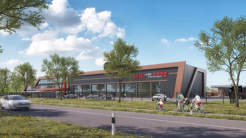 Auf dem Gelände des ehemaligen Kalksandsteinwerks in Bocholt entsteht in den kommenden Monaten ein moderner und repräsentativer Unternehmenssitz für die MSL Mobile Fahrstraße GmbH einen stark wachsenden Spezialisten im Bereich mobiler Fahrstraßen. Der Neubau vereint künftig Verwaltung, Werkstatt und Lager an einem zentralen Standort und schafft damit die räumlichen Voraussetzungen für die weitere Entwicklung des Unternehmens.