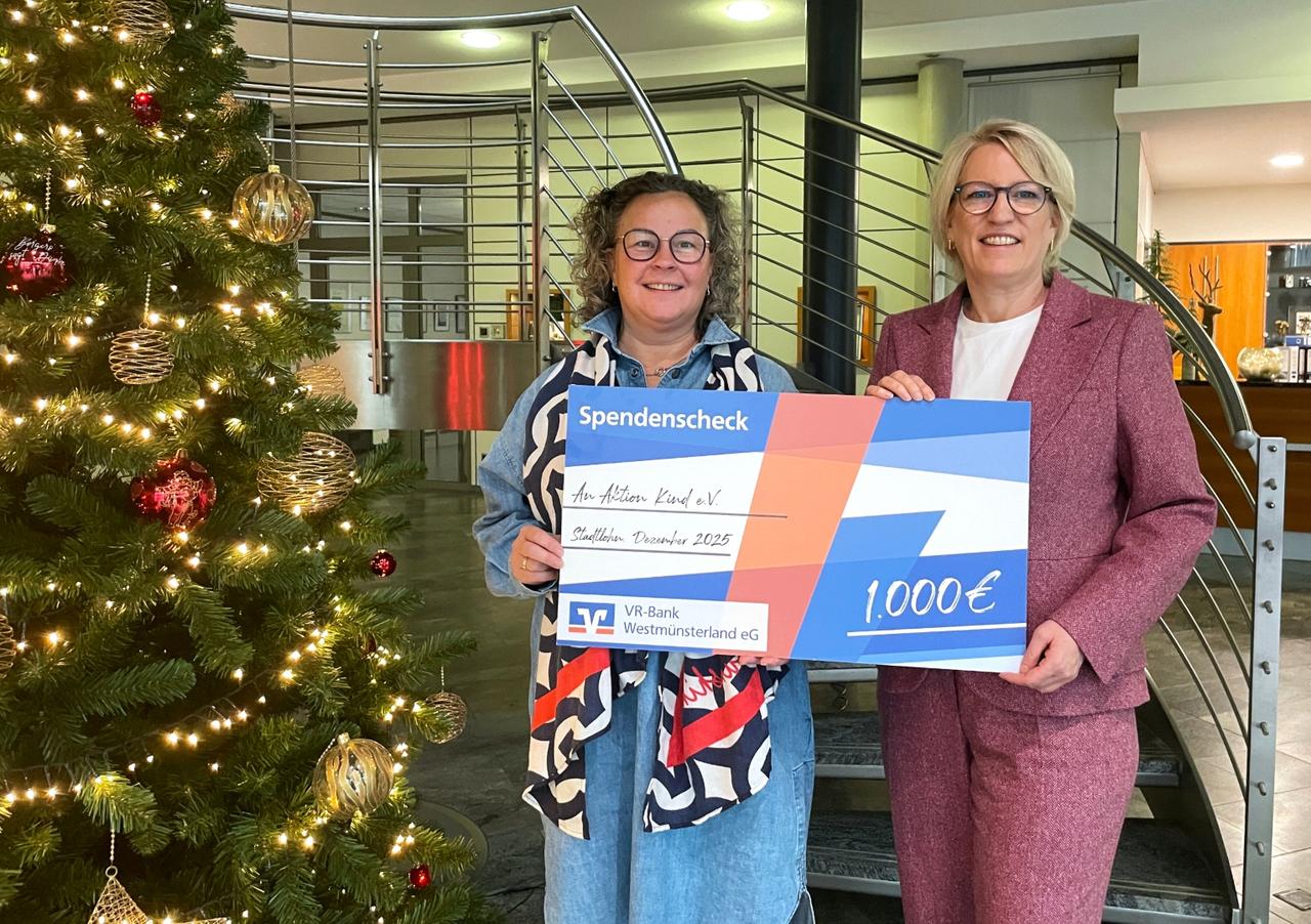 Auch in diesem Jahr möchten wir zur Weihnachtszeit ein Zeichen der Solidarität setzen und eine Organisation aus unserer Region unterstützen. Unsere Spende in Höhe von 1.000 Euro geht an Aktion Kind e.V., einen Stadtlohner Verein, der seit vielen Jahren Herzenswünsche kranker oder behinderter Kinder und Jugendlichen erfüllt.