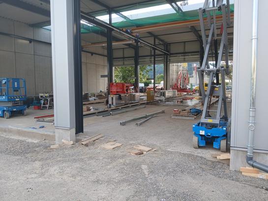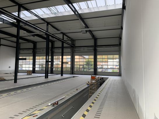 Die bisherige Bus-und LKW Werkstatt auf dem Betriebsgelände wird komplett abgerissen, um Platz für die neue Elektrobus-Werkstatt zu schaffen.