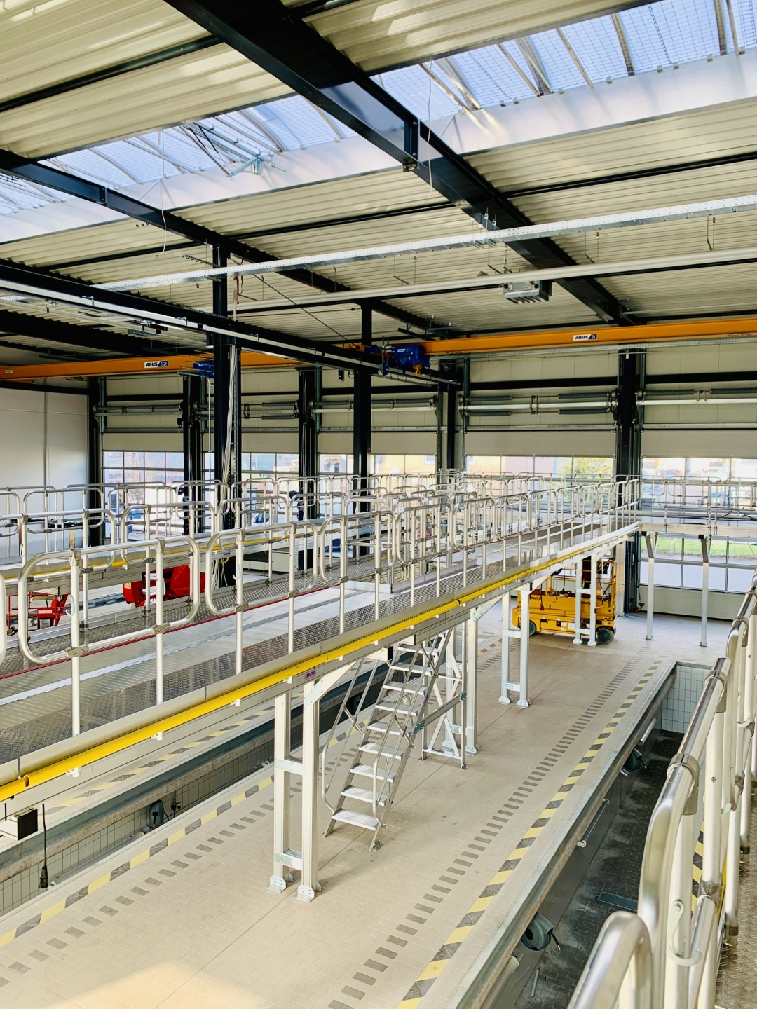 Es entsteht ein funktionaler Betrieb mit sechs Busspuren und einer Gesamtgröße von knapp 1.000m². Bei der Planung des Gebäudes haben wir selbstverständlich die Besonderheiten der Elektrobus Reparatur berücksichtigt – so sind unter anderem die Raumhöhe sowie auch das Heizungs- und Beleuchtungskonzept darauf abgestimmt.