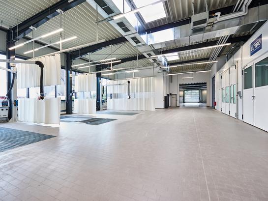 Um ein geeignetes Grundstück auszuwählen, haben wir für das Familienunternehmen Faensen die Bebaubarkeit mehrerer Standorte geprüft. Aber auch das schließlich gewählte Baugrundstück mit 8.000 qm stellte aufgrund von Kontaminationen, geringer Tragfähigkeit sowie vorhandener Erdleitungen besondere Herausforderungen. Die Entwicklung eines intelligenten, d.h. wirtschaftlichen Konzeptes für die Baufeldvorbereitung und Gründung durch unsere „Gründungsexperten“ hat sich aber aufgrund der exzellenten Lage mit Autobahnanbindung gelohnt – zumal (auch) in Aachen gute Grundstücke äußerste Mangelware sind. Die Wirtschaftlichkeit des Geschäftsbetriebes konnte aufgrund gut durchdachter Arbeitsprozesse deutlich gesteigert werden. Die Anordnung von der Direktannahme über die mechanische Werkstatt, Karosseriewerkstatt bis zur Vorbereitung und Lackierkabine mit Querverschub zur Trockenkabine sowie Finishplatz und schließlich bis zur Fahrzeugpflege ermöglicht effektive Abläufe. Die Bereiche „Fahrzeugsicherstellung, Leihwagen, Abschleppdienst sowie Büro- und Sozialräume“ runden das Raumprogramm ab.