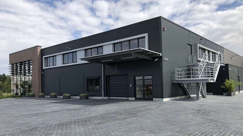Entstanden ist ein funktionales Gebäude mit Wareneingang und -ausgang, Lager- und Kommissionierungsbereichen, Technik-, Büro- und Sozialräumen mit einer Gesamtgröße von ca. 1.700m² sowie Außenanlagen mit ca. 3.700m².