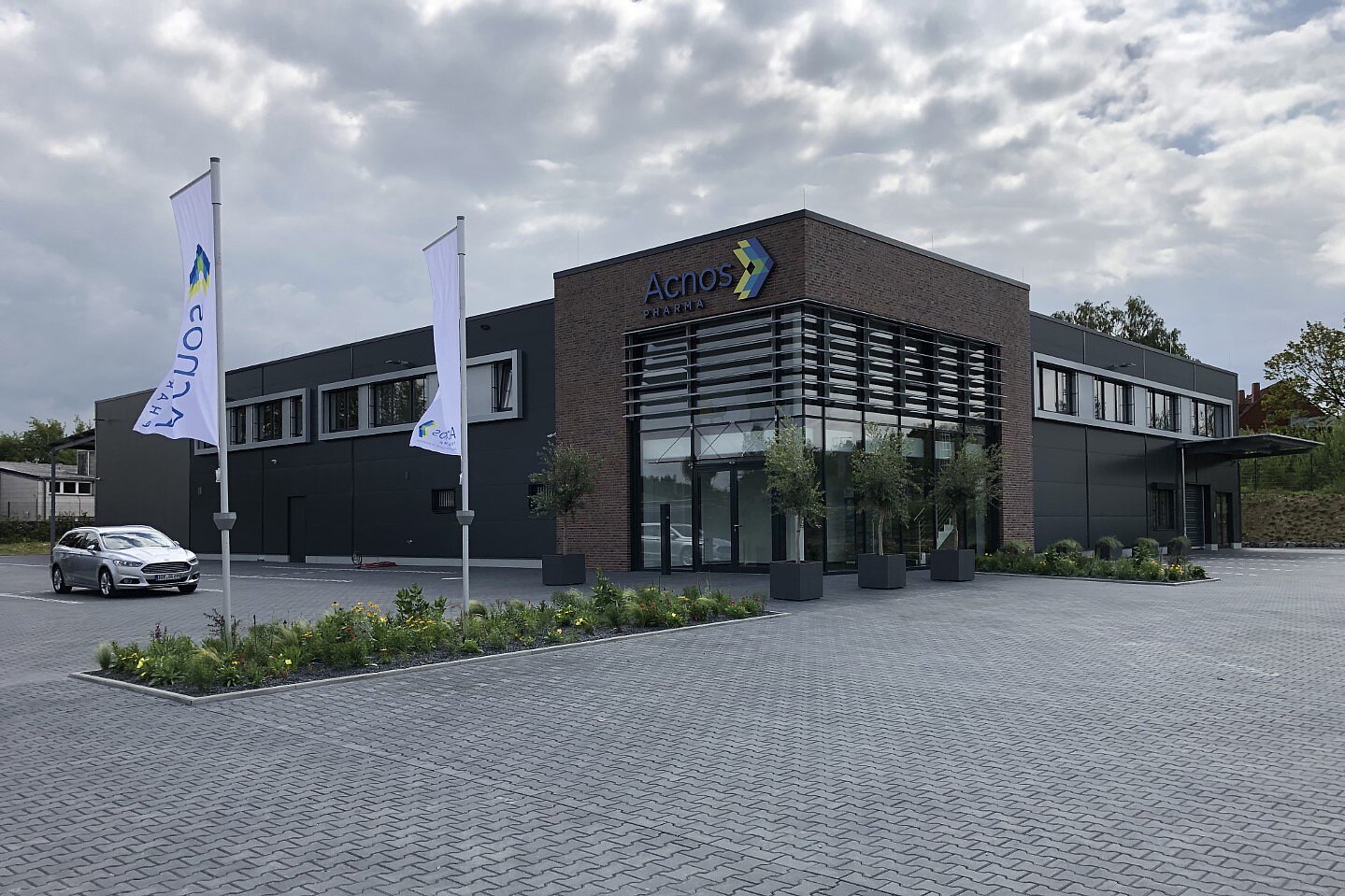 Für das Unternehmen Acnos Pharma GmbH durften wir den Neubau eines Produktions- und Verwaltungsgebäudes realisieren – von der Projektentwicklung über den Entwurf und die Ausführungsplanung bis zur schlüsselfertigen Errichtung und Erstellung der Außenanlagen. Das Unternehmen ist im Pharmazeutischen Großhandel tätig. Daher wurden bei der Planung des Gebäudes die spezifischen Anforderungen für die sachgemäße Lieferung, Lagerung, Kommissionierung und den Versand von pharmazeutischen Artikeln berücksichtigt, insbesondere durch unterschiedliche Kühl- und Klimabereiche.