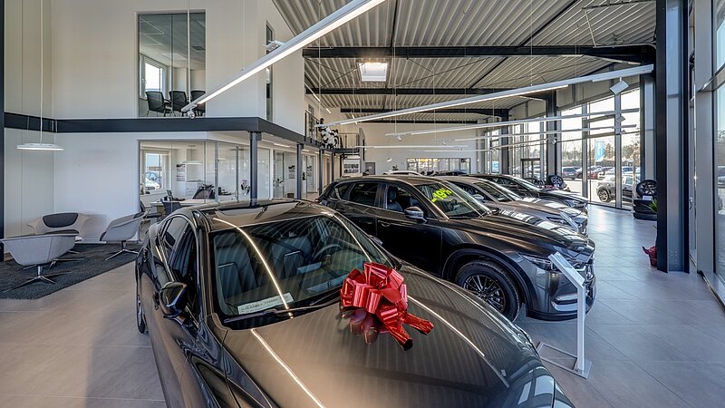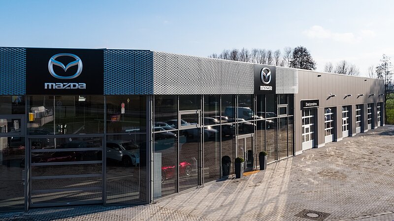 Für Auto Fischer haben wir in Karben ein 1.200 qm großes Mazda Autohaus gebaut. Herzstück des zweigeschossigen Neubaus ist die 452m² große Ausstellungsfläche, neben einem Werkstattbereich, Lagerflächen, einer Dialogannahme sowie Büro- und Sozialräumen. Nach einer rund neunmonatigen Bauzeit wurden im feierlichen Rahmen die Schlüssel an die Bauherren Familie Fischer und Reis überreicht.