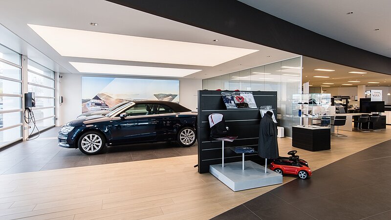 Für die Autohaus Gotha GmbH (AHG GmbH) durften wir einen Audi-Terminal planen und schlüsselfertig bauen. Die Audi-CI, also das Terminal-Konzept, wurde entsprechend der aktuellen Anforderungen vollständig umgesetzt. Herzstück des eingeschossigen Neubaus ist die ca. 508m² große und beeindruckende Ausstellungsfläche für Neufahrzeuge der Marke Audi.