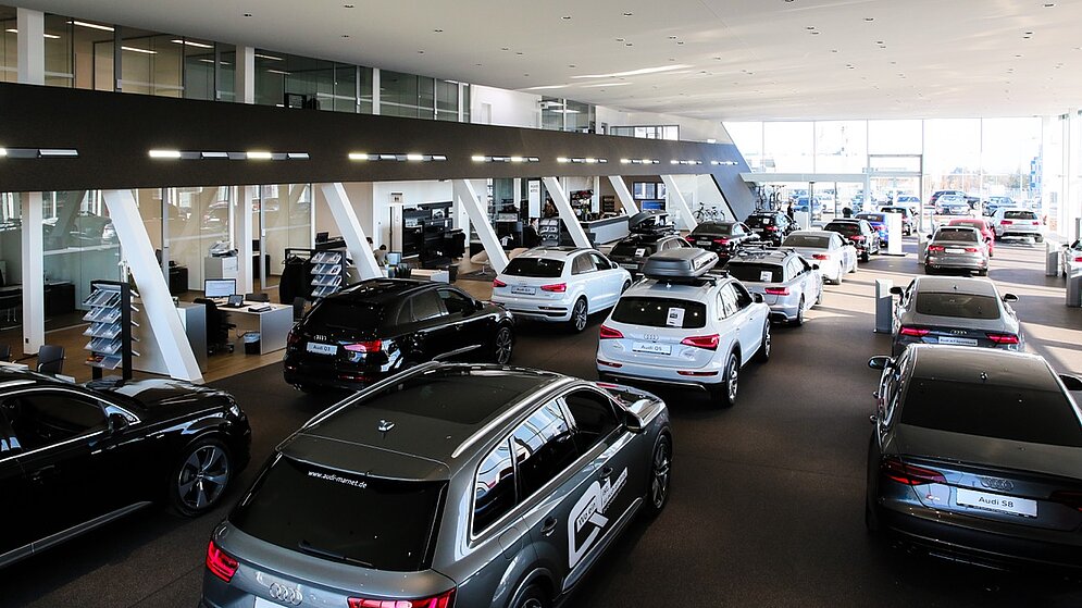 Höchste Ausführungsqualität ist für uns selbstverständlich. Auf einem Grundstück mit ca. 12.000 m² wurde das 4.500 m² große Autohaus (Showroom: 750 m²) errichtet. Auf diesem Raum können die komplette Audi-Modellpalette sowie einige ausgewählte Sportexponate präsentiert werden.