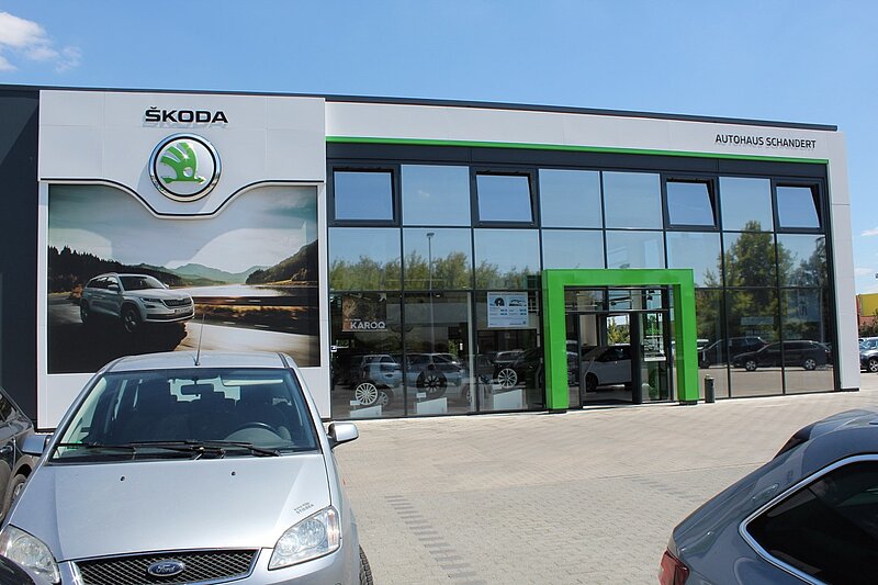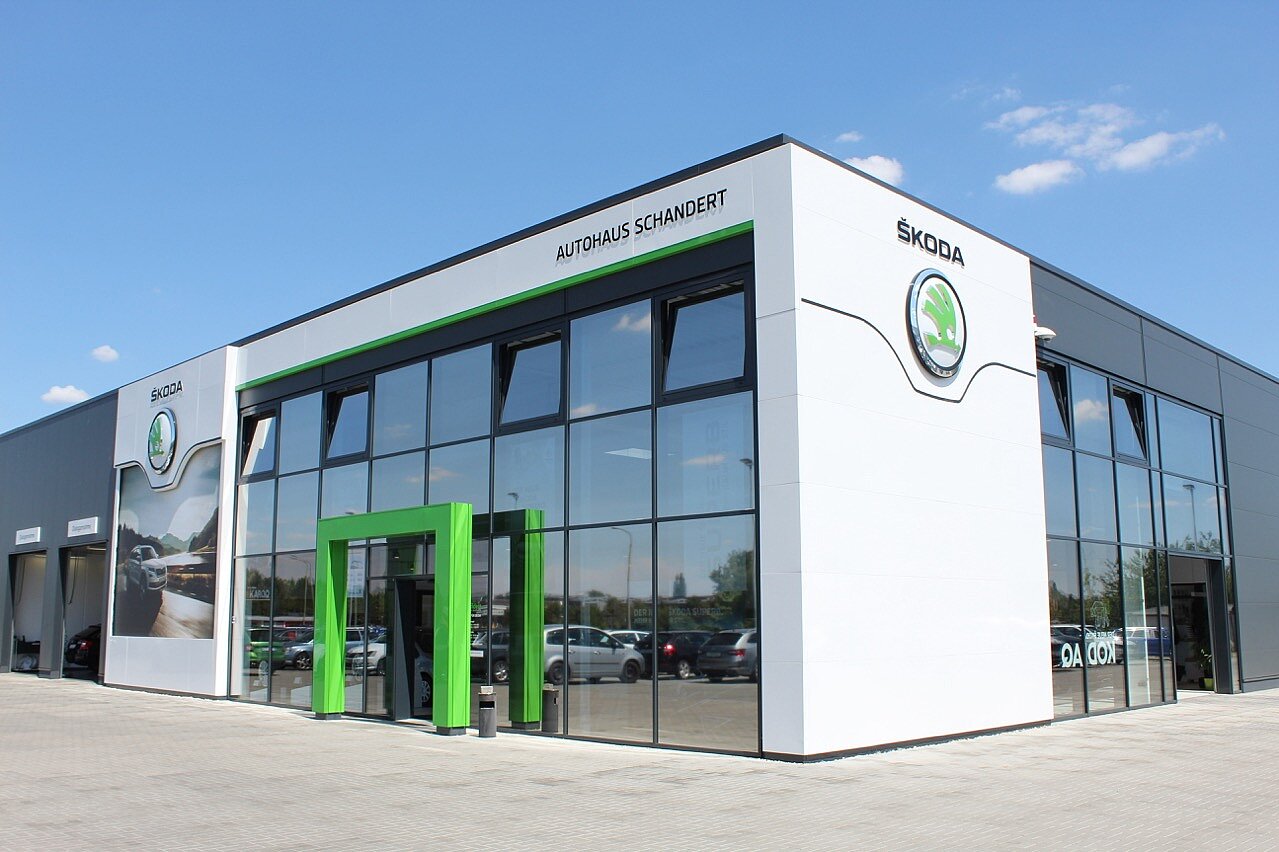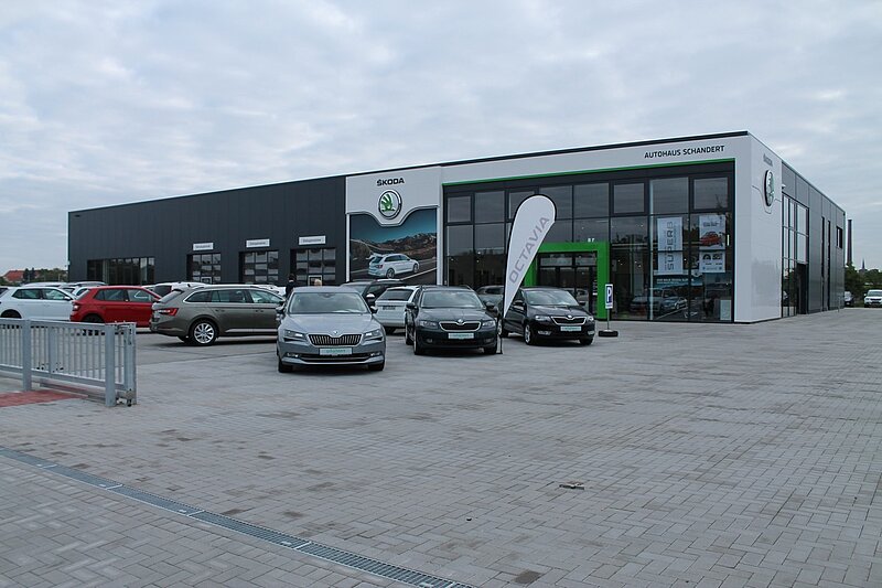 In knapp 9-monatiger Bauzeit entstand für das Autohaus Schandert ein ca. 2.000 m² großer Neubau nach den aktuellsten CI-Vorgaben der Marke Skoda. Auf einem ehemaligen Baracken-Grundstück wurden großflächig alte Fundamente und Sohlplatten herausgestemmt und entsorgt um für den Neubau Platz zu schaffen. Die Lage des neuen Autohauses besticht durch ihren zentralen Standpunkt an der Mannheimer Straße in Dessau.