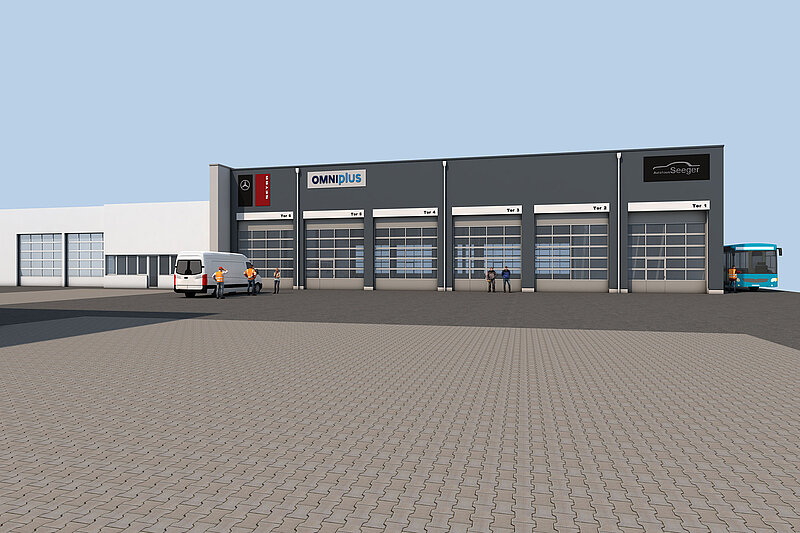 Autohaus Seeger bietet einen umfassenden Service für Mercedes Benz Fahrzeuge – vom PKW über Transporter bis zum LKW. Für das Familienunternehmen durften wir den eine Werkstatt für Elektrobusse planen und schlüsselfertig bauen. Die bisherige Bus-und LKW Werkstatt auf dem Betriebsgelände wurde komplett abgerissen, um Platz für die neue Elektrobus-Werkstatt zu schaffen.