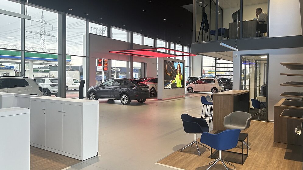 Autohaus Westkamp ist seit über 77 Jahren am Standort in Frechen ansässig. Für den Familienbetrieb mit über 100 Mitarbeitenden durften wir den Neubau einer modernen VW-Ausstellung realisieren. Das Gebäude umfasst eine Brutto-Fläche von über 900m² und wurde nach dem aktuellen „New Brand Design“ Handelsplatzkonzept des Markenherstellers gebaut.  Das neue CI Konzept ermöglicht eine individuellere Kundenbetreuung durch effiziente digitale Anwendungen und neue Möglichkeiten für eine emotionale Produktpräsentation.