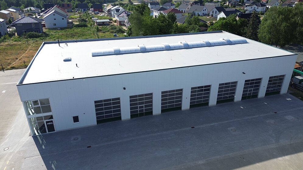 Das Unternehmen BEFA Fahrzeugbau GmbH bietet individuelle Lösungen im Fahrzeugbau inklusive Werkstatt- und Serviceleistungen an. Zur Kapazitätserweiterung am Standort Bad Belzig durften wir ein ca. 1.395 m² großes Betriebsgebäude mit Produktionshalle, Büro- und Sozialräumen, Lager und Technikräumen inklusive Außenanlagen schlüsselfertig realisieren.