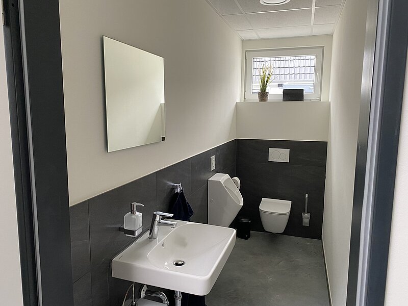 Die übrige Fläche wird an andere Gewerbetreibende vermietet. Der Grundriss ist dabei flexibel geplant und kann bei Bedarf auch später individuell angepasst werden. Auch ist die spätere Aufrüstung mit einer PV-Anlage möglich. Zur Beheizung kommt eine Fußbodenheizung zum Einsatz.