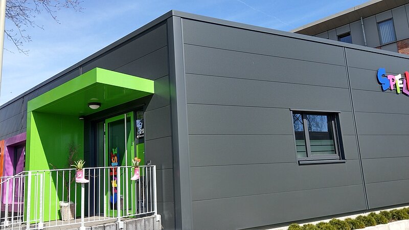 Wir sind nicht nur seit 25 Jahren Nachbarn der Elterninitiative, sondern auch Eigentümer des Gebäudes und haben uns kurzerhand entschlossen die Kita an gleicher Stelle wiederaufzubauen. So konnten nach nur 5 Monaten Bauzeit und einer extrem schnellen Planungs- und Genehmigungsphase die Kinder zurück in eine neue und modern gestaltete Kita ziehen.