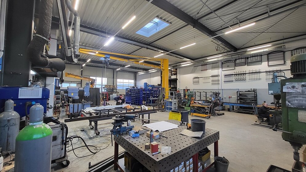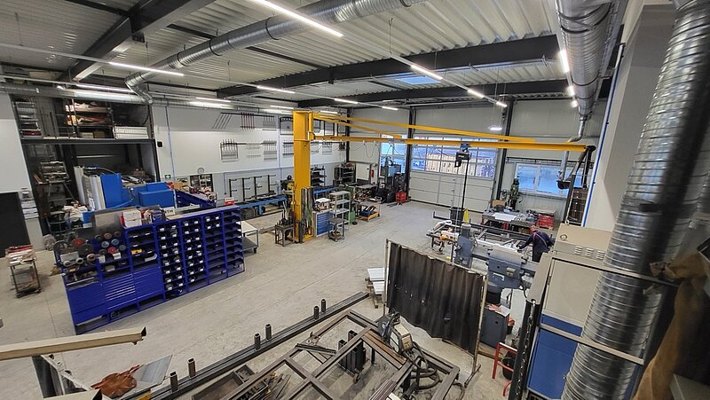 Für die G&P Metallbau GmbH durften wir ein neues Betriebsgebäude mit einer Gesamtgröße von ca. 754m² planen und bauen. Das funktionale Gebäude umfasst neben einem ca. 500m² großen Werkstattbereich auch Büro- und Sozialräume sowie Technik- und Lagerräume. Zur Beheizung kommt eine moderne Luft-Wasser-Wärmepumpenanlage zum Einsatz.