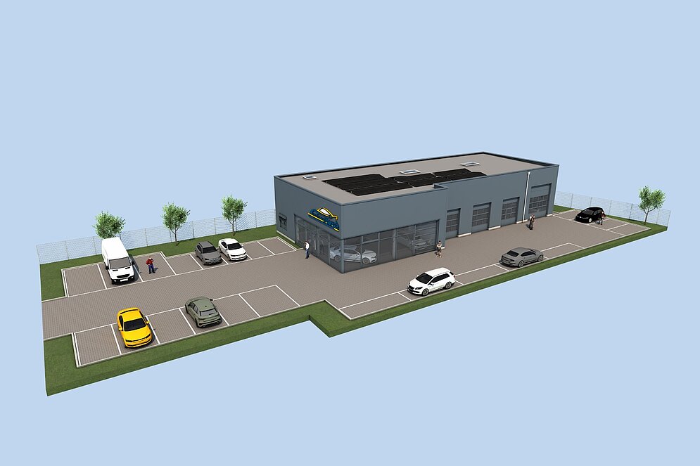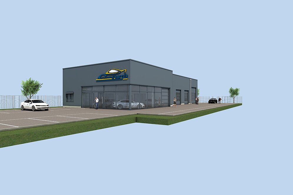 Nach einem schweren Brandschaden am bisherigen Standort wandte sich das Unternehmen GRASSER CARS - SALES - SERVICES mit dem Wunsch nach einem schnellen und zuverlässigen Neubau an uns. Das Projekt nahm unmittelbar Fahrt auf: Bereits einen Tag nach der ersten Kontaktaufnahme war unser Projektentwickler vor Ort, um sich ein Bild von den Anforderungen zu machen. Innerhalb von drei Wochen stellten wir Entwurf und Angebot vor und erhielten bereits eine Woche nach Einreichen des Bauantrags die Baugenehmigung. Vom Erstkontakt bis zum Baustart vergingen gerade einmal drei Monate.