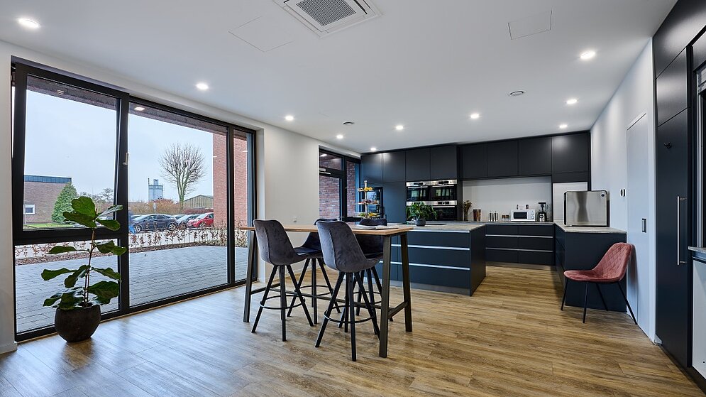 Außerdem ist das Gebäude nach Energieeffizienzstandard KfW 55 gebaut und spart u. a. dank hoher Dämmstandards, Wärmepumpe, LED-Beleuchtung und PV-Anlage 45 Prozent der Energie ein, die ein Neubau dieser Größe normalerweise verbrauchen würde. Ein weiterer Vorteil: Die Etagen des dreigeschossigen Gebäudes sind auch separat nutzbar und lassen sich bei Bedarf vermieten. „Mit diesem Standort sind wir für die Zukunft gut aufgestellt“, fasst Heisterborg-Geschäftsführer Tim Slaba das gelungene Projekt zufrieden zusammen.