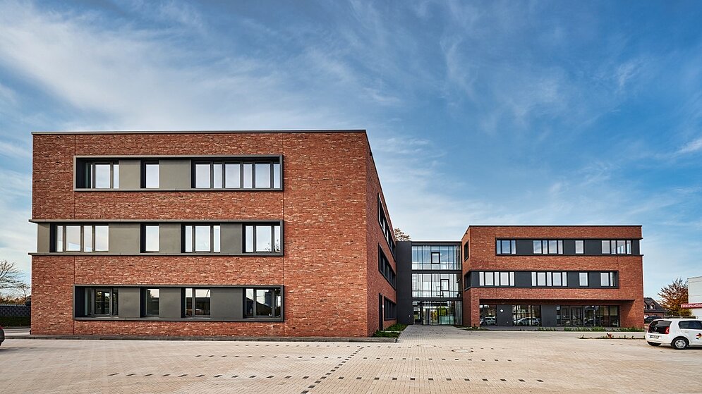 Eine typische Herausforderung expandierender Unternehmen: Die Räumlichkeiten werden zu klein für die steigenden Mitarbeiterzahlen, die in der Not auf verschiedene Immobilien verteilt werden müssen – für Effizienz und Weiterentwicklung eine eher hinderliche Situation. So ging es auch der Steuerberatung Heisterborg, die uns deshalb mit einem neuen, repräsentativen Bürogebäude inklusive Außenanlagen beauftragte, das wir in 14 Monaten Bauzeit realisierten.