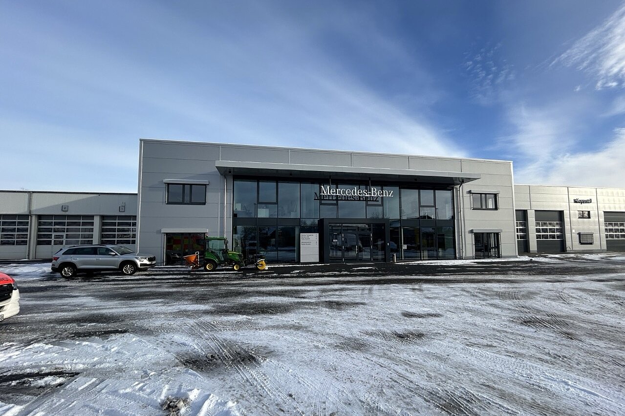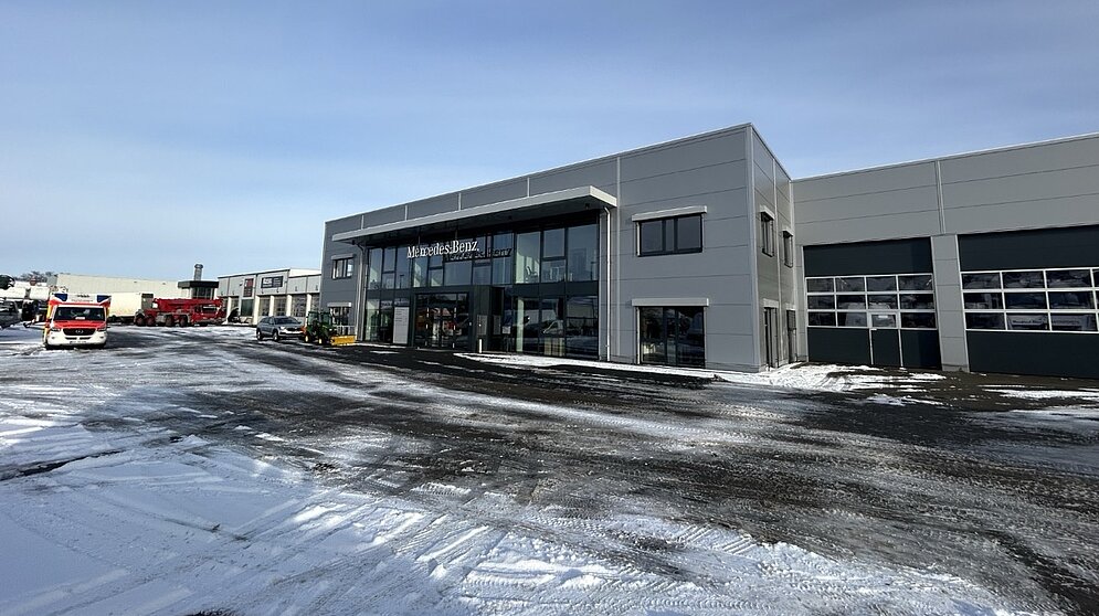 Für Koepsell Nutzfahrzeuge GmbH durften wir eine neue LKW-Werkstatt mit Kundenzentrum realisieren. Am neuen Service-Standort werden Karosserie- und Reparaturarbeiten für Nutzfahrzeuge und LKW der Marke Mercedes Benz angeboten. Es ist ein funktionales Gebäude mit einer Nutzfläche über 3.000m² entstanden - mit insgesamt drei LKW Arbeitsgruben sowie Arbeitsplätzen für Karosserie und Reparatur, Fahrzeugwäsche, Technikräume, Lagerflächen sowie Büro- und Sozialräume. Das modern ausgestattete Gebäude vereint optimale Prozessabläufe mit wirtschaftlicher Bauweise.