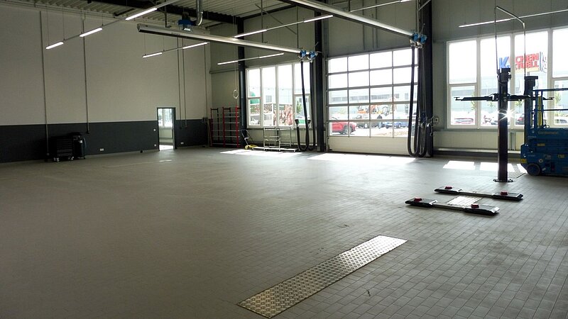 Der Kfz-Servicebereich umfasst auf 900 qm zwei Direktannahmen und sechs Hebebühnen. Das Gebäude wurde von der KfW bezuschusst, da es den Energieeffizienzstandard KfW 55 erfüllt. Unser Bauherr, Herr Schmitz, meint: „Das ist sehr professionell gelaufen. Im Rückblick würden wir auch die Außenanlagen von Borgers machen lassen.“ Das können wir bei dem nächsten Bauvorhaben gerne so machen!