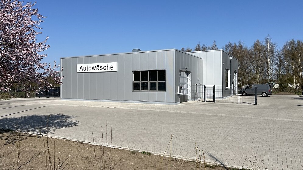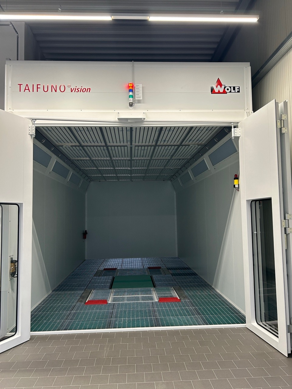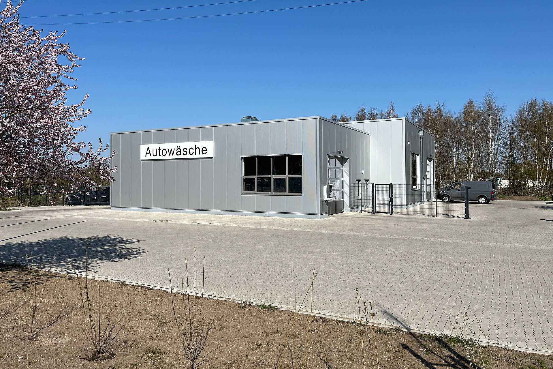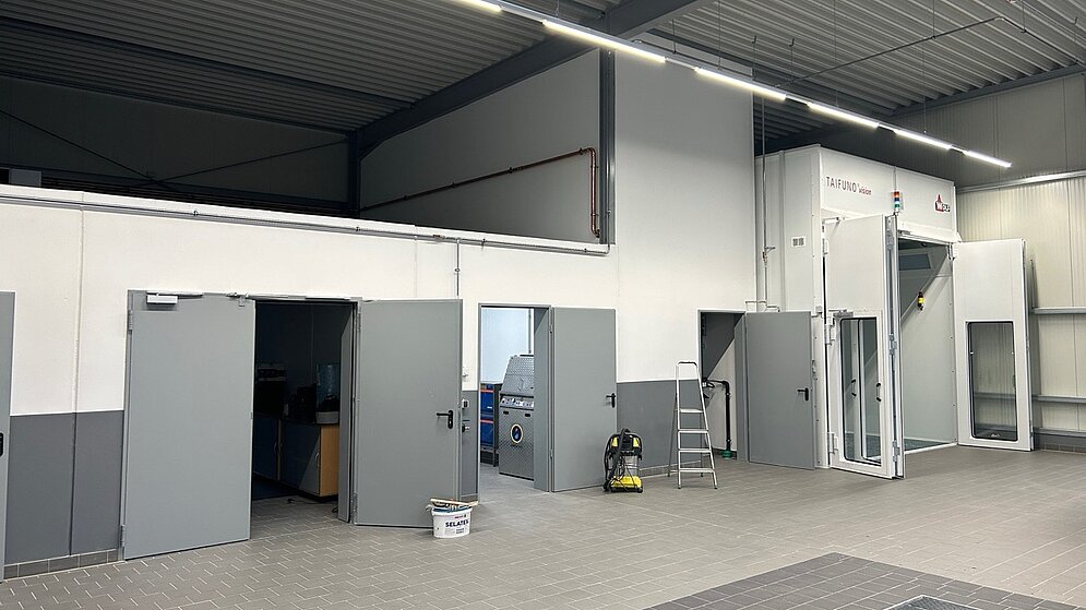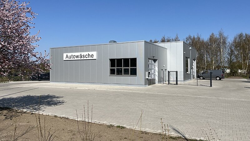 Bei der technischen Ausstattung arbeitete die Bauherrschaft eng mit bewährten Partnern wie WashTec (Portalwaschanlage) und Wolf (Kombi-Lackier- und Trockenkabine) zusammen – und wir als Generalunternehmen konnten diese nahtlos in das Gesamtkonzept integrieren.