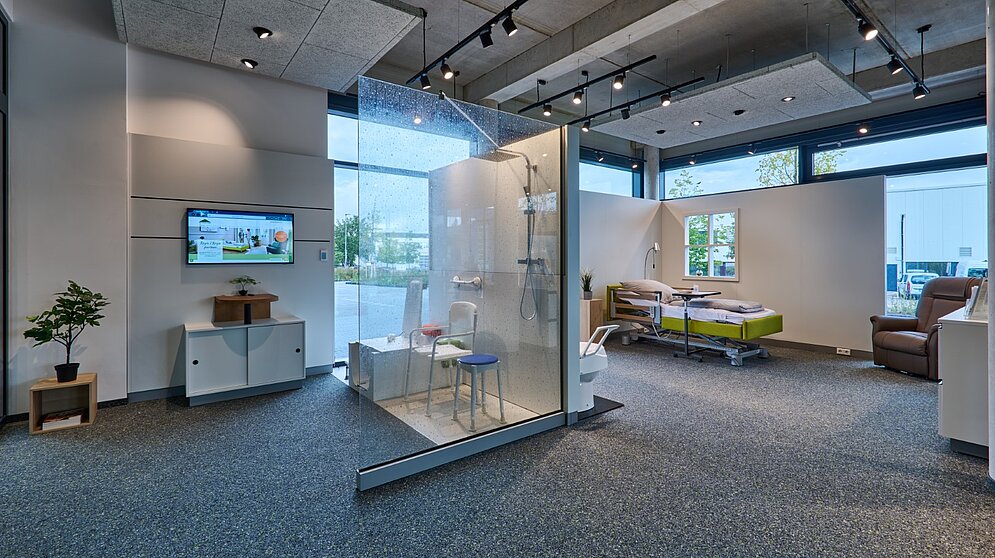 Auf einer Gesamtgröße von ca. 1.750 m² sind Flächen für die Bereiche Ausstellung, Werkstatt, Technikräume, Lager, Schulungs-, Verwaltungs- und Sozialräume entstanden. Im Ausstellungsbereich gelangen Kundinnen und Kunden von einer Einrichtungswelt in die nächste – und können Lösungen für Bad, Schlaf- und Wohnzimmer hautnah erleben. Mit Produkten zum Anfassen und digitalen Tools als Beratungsergänzung bietet der Neubau der Kundschaft ein überzeugendes Besuchererlebnis – und entlastet auch die Mitarbeitenden.