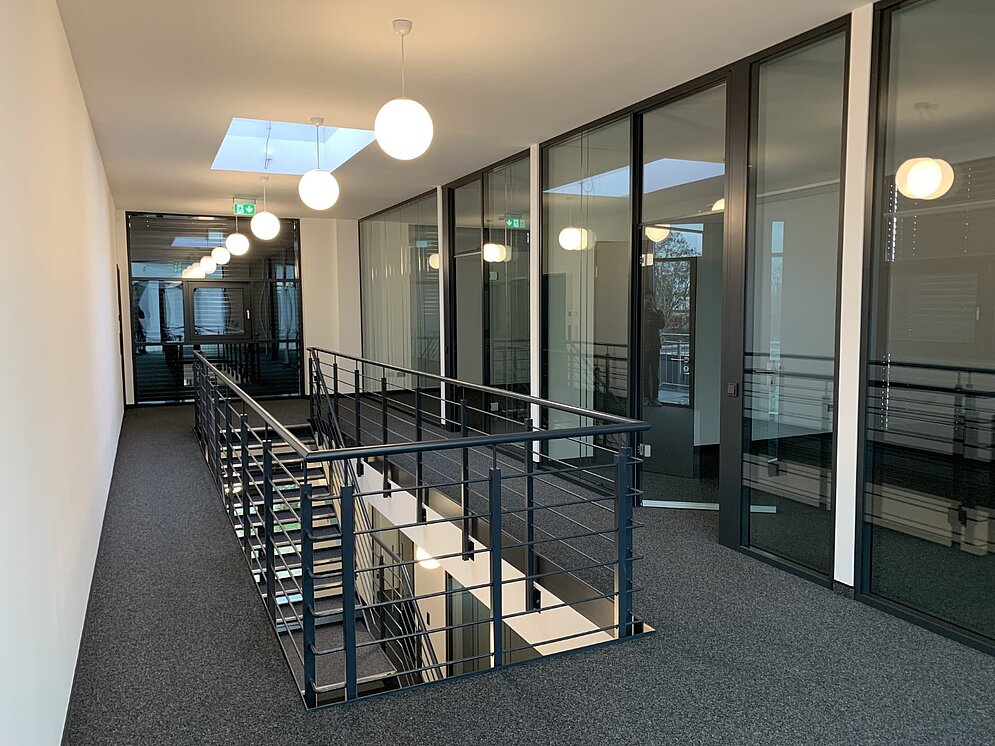 Die Schäfer Additivsysteme GmbH ist in der Entwicklung und Vermarktung von maßgeschneiderten, innovativen Additivsystemen für die Chemieverarbeitende Industrie tätig und beauftragte uns bereits für zwei Projekte. Das erste war die schlüsselfertige Erstellung eines Bürogebäudes mit einem Lager und Labor. Das Gebäude wurde frei geplant mit zwei identisch großen, nebeneinanderliegenden Gebäuden, verbunden mit einem Zwischenbau, in dem der Eingang platziert wurde. In dem linken Gebäudeteil wurden das Lager sowie das Labor vorgesehen. Im rechten Gebäudeteil wurde ein 252 m² großes zweigeschossiges Bürogebäude mit innenliegendem offenen Treppenhaus erstellt. Die Bauzeit betrug 8 Monate.