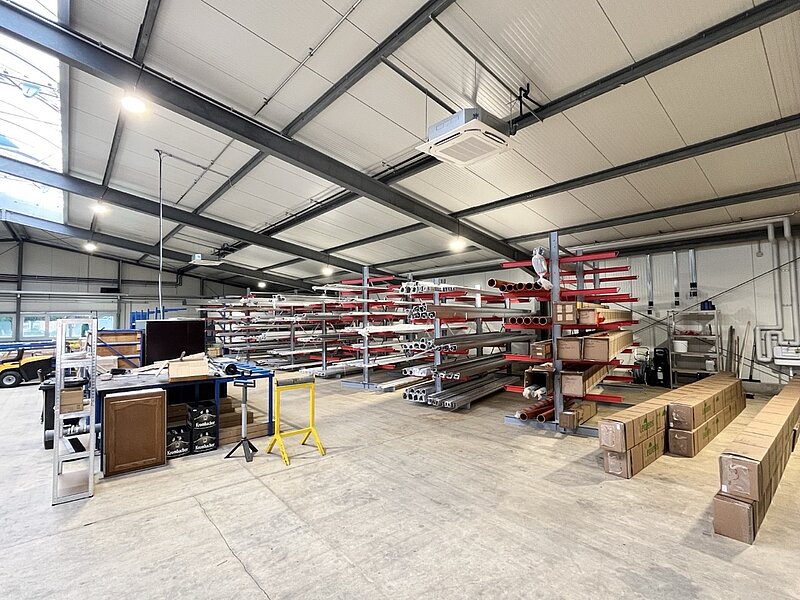 Sogar zwei Wochen früher als geplant konnten wir das Gebäude schließlich schlüsselfertig an die Bauherren übergeben – ausgestattet mit neuesten Energieeffizienzstandards wie Wärmepumpen- und PV-Anlage, einer größeren Fensterfassade für mehr Licht in der Ausstellung und modernisierten Innenräumen. Das neue Betriebsgebäude umfasst eine Gesamtgröße von ca. 830m², bestehend aus Werkstatt, Büro- und Sozialräumen, Ausstellungsbereich sowie einem einladenden Eingangsbereich.