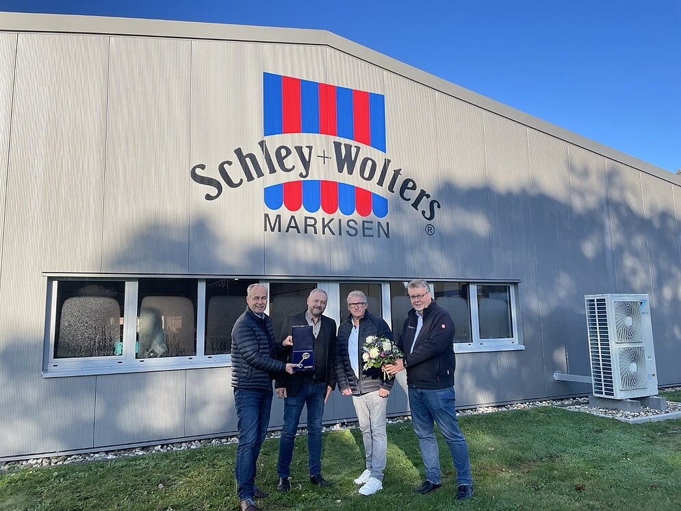 Der Geschäftsbetrieb des Markisenherstellers konnte schon während des Baus in einem Container auf dem Hof weitergehen, während wir uns ganzheitlich um den Wiederaufbau kümmerten und auch bei Versicherungsabwicklungen unterstützten. „Das Team von Borgers hat uns in dieser schwierigen Phase den Rücken freigehalten!“, so Unternehmer Jürgen Schley.