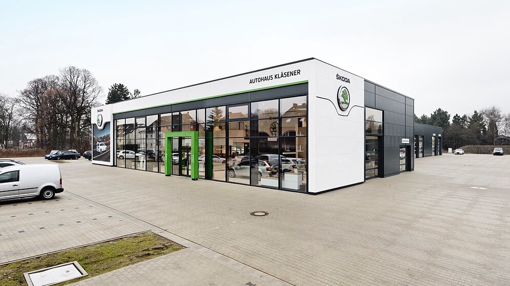 Den Generationenwechsel im Autohaus Kläsener durften wir als Generalbauunternehmen mit der Planung und dem Bau eines neuen Firmenstandortes unterstützen. Unsere Projektentwicklung für das Skoda-Autohaus mit VW-Servicebetrieb umfasste sämtliche Leistungen von der Grundstücksbewertung über den Entwurf und die Ausführungsplanung bis zur kompletten Errichtung der Gebäude (ca. 1.900 qm) und Außenanlagen.