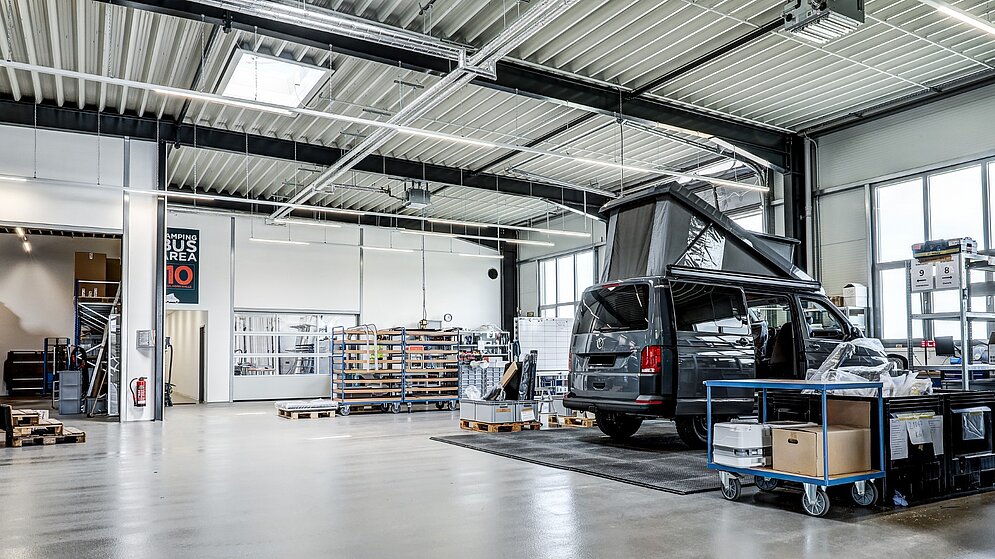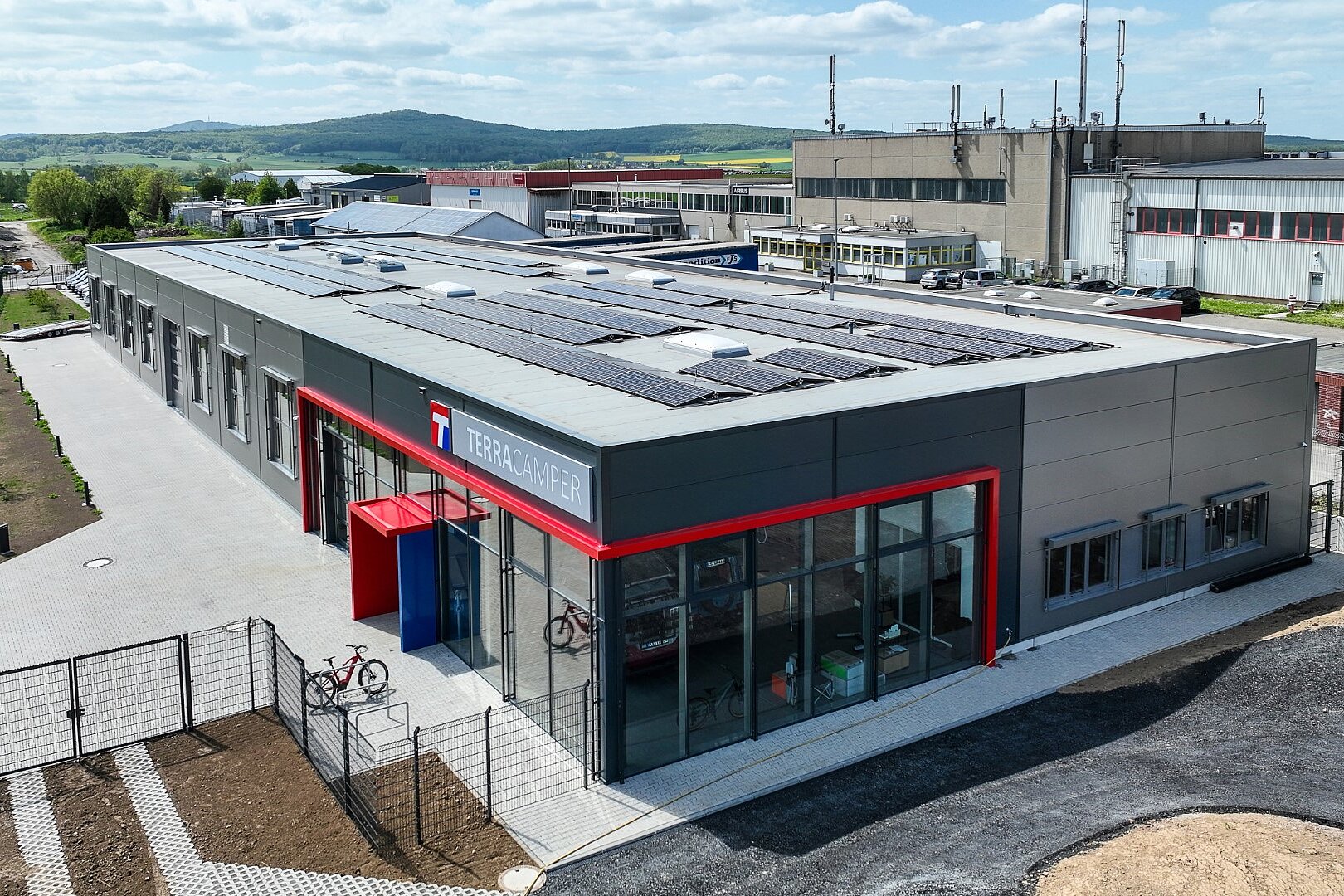 Das Unternehmen Terracamper baut Reise-/Expeditionsmobile und hochwertige Einrichtungs-Systeme. Für unseren Bauherrn durften wir eine 1.452 m² große Produktionsstätte mit Ausstellung realisieren. Der Neubau ist im neuen Gewerbegebiet in Calden, auf einem ehemaligen Flughafengelände entstanden. Herzstück ist der ca. 1.170 m² große Werkstattbereich inkl. Karosserie, Technik- und Lagerräumen. Die Ausstellung mit Büro- und Sozialräumen umfasst ca. 283m².