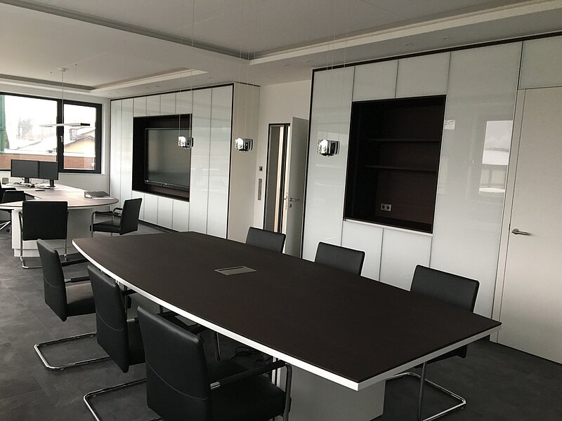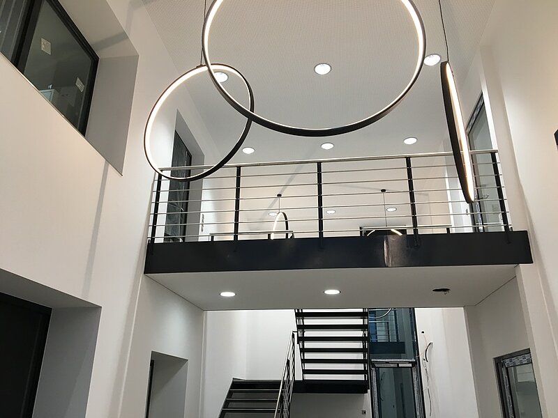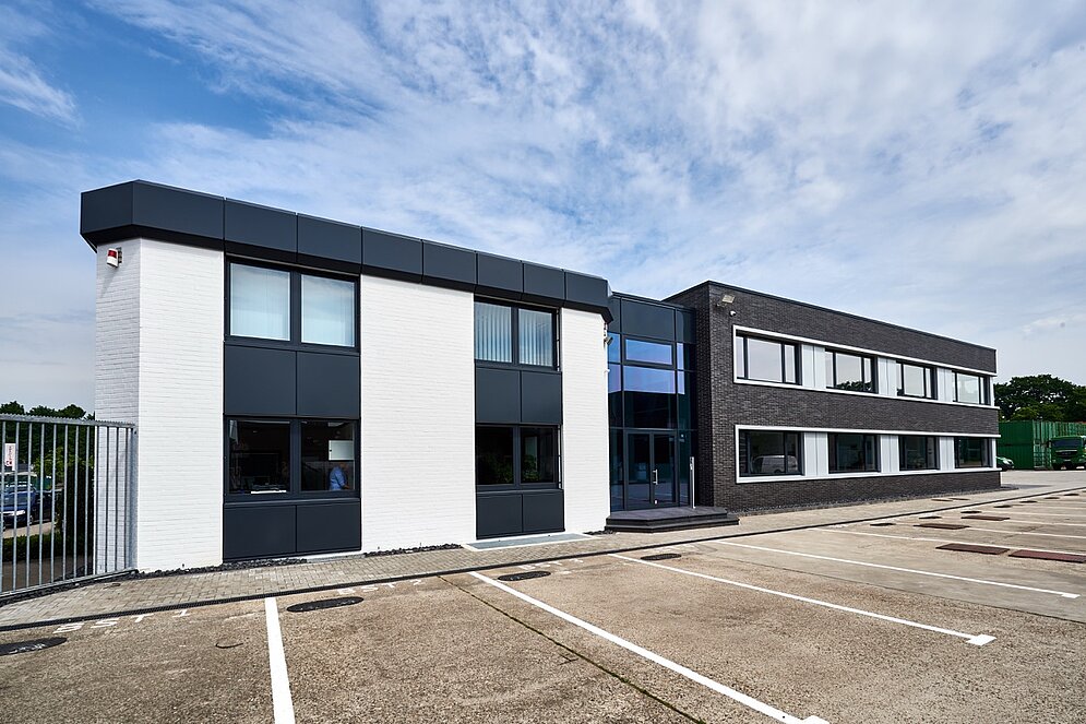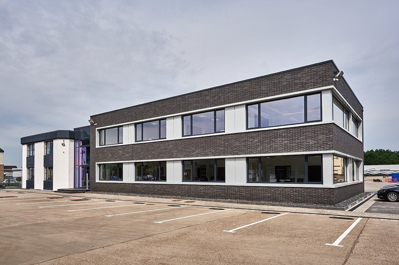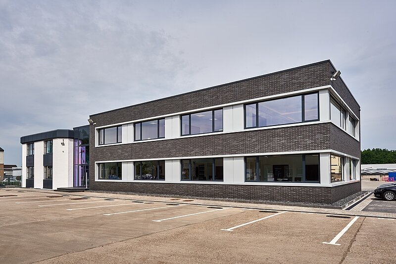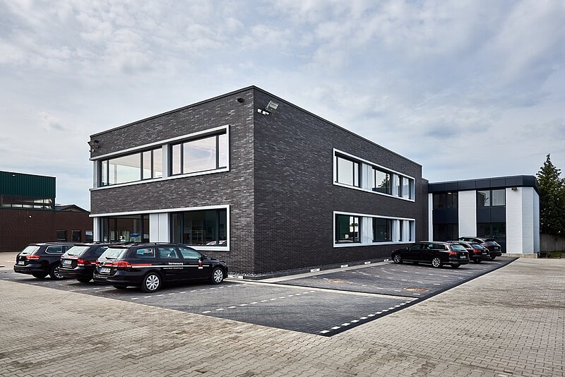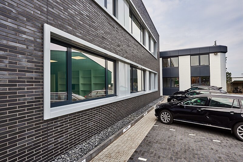 Ein repräsentativer Verbindungsgang gliedert die Gebäudeteile nicht nur architektonisch, sondern er schafft auch kurze Wege zwischen dem neuen zweigeschossigen Bürogebäude und dem Bestandsgebäude. Mit dem Erweiterungsbau sind beste Voraussetzungen für das weitere Wachstum des modernen Unternehmens geschaffen.