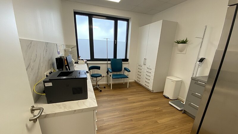 Wir haben den ca. 400m² großen Grundriss an den Bedarf des Praxisbetriebs angepasst und zusätzliche Räume geschaffen, die mit den entsprechenden medizinischen Installationen ausgestattet wurden.