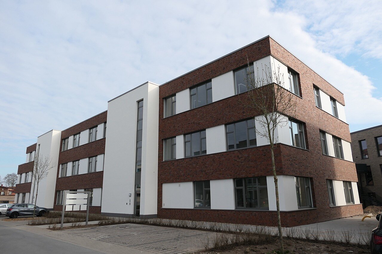 „VR sieben.neun“ – abgeleitet aus der Adresse Am Campus 7 und 9: So lautet der Name des neuen Büroquartiers der VR-Bank Westmünsterland auf dem Campusgelände in Gescher. Die Phase der Projektentwicklung haben wir intensiv begleitet mit der Klärung des Baurechtes, Erstellung des Entwurfes sowie der Optimierung von Netto-Mietflächen und Baukosten. Anschließend haben wir in 13 Monaten Bauzeit ein modernes, dreigeschossiges Büro- und Verwaltungsgebäude mit über 2.550 m² Nutzfläche realisiert – natürlich schlüsselfertig zum Festpreis und mit garantierter Bauzeit.