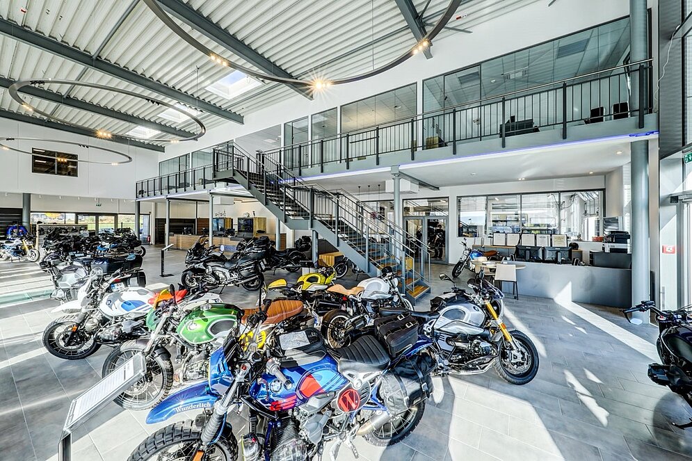 Wunderlich ist die Nr. 1 weltweit für hochwertiges BMW Motorradzubehör. Im Innovationspark Rheinland haben wir die neue 5.400 m² große Unternehmenszentrale gebaut. Die Flächen für die Bereiche Zentralverwaltung, Werkstatt und Fertigung, Ausstellung, Lager und Logistik bieten ausreichend Raum für das weitere Unternehmenswachstum. Entsprechend der unterschiedlichen Nutzungen verbindet der Entwurf aus unserem Hause bzw. die Architektur spektakuläre, hochwertige und funktionale Bauweisen.
